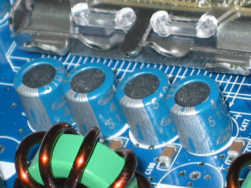 那固态电容又好在哪里呢?对于经常去网吧或者长时间使用电脑的朋友,一定有过或者听过由于主板电容导致电脑不稳定,甚至于主板电容爆裂的事情!那就是因为一方面主板在长时间使用中,过热导致电解液受热膨胀,导致电容失去作用甚至由于超过沸点导致膨胀爆裂!另一方面是,如果主板在长期不通电的情形下,电解液容易与氧化铝形成化学反应,造成开机或通电时形成爆炸的现象。但是如果采用固态电容,就完全没有这样的隐患和危险了!